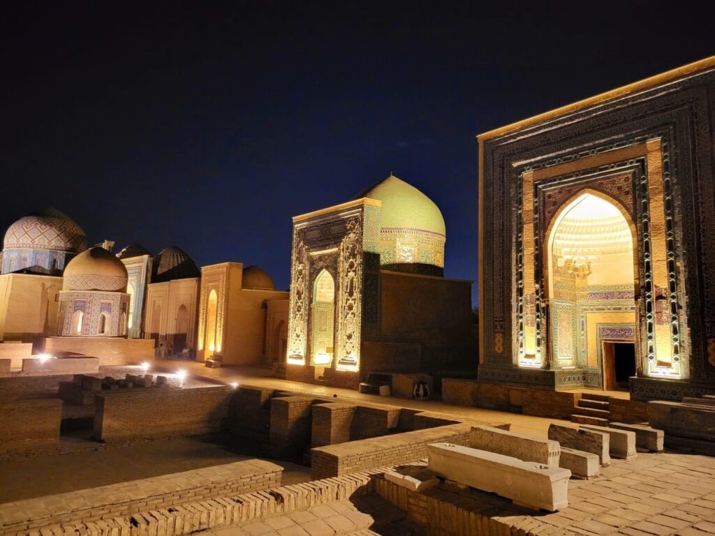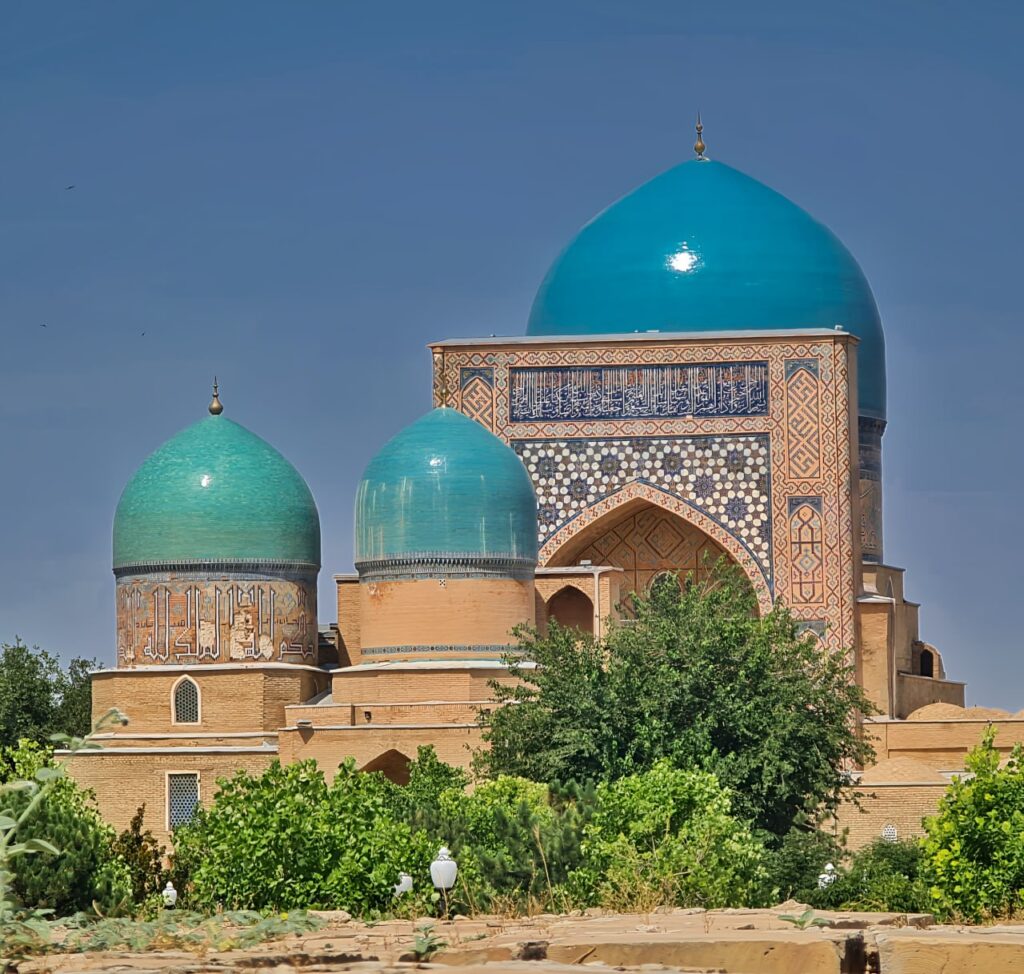 Today in Shahrisabz, we visit the Dorut Tilovat complex, including the Kok Gumbaz Mosque (1435). The inscription in the portal testifies that it was built by Ulugbek in the name of his father, Shakhrukh. We then visit the Darus-Saodat complex, including the Jahangir Mausoleum (1379/80). Timur’s son Jahangir fell from his horse at the age of 12 and died. In the afternoon, we continue to Samarkand. Arrival in Samarkand. Dinner with an Uzbek family. Overnight at the hotel.